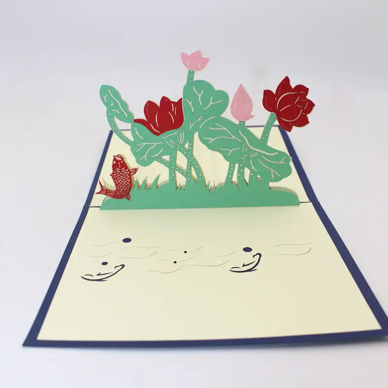 ホット 3d レーザーカット手作り魚開花蓮の葉紙招待状グリーティングカードはがき子供祭祝福ギフト カード 招待状 Aliexpress